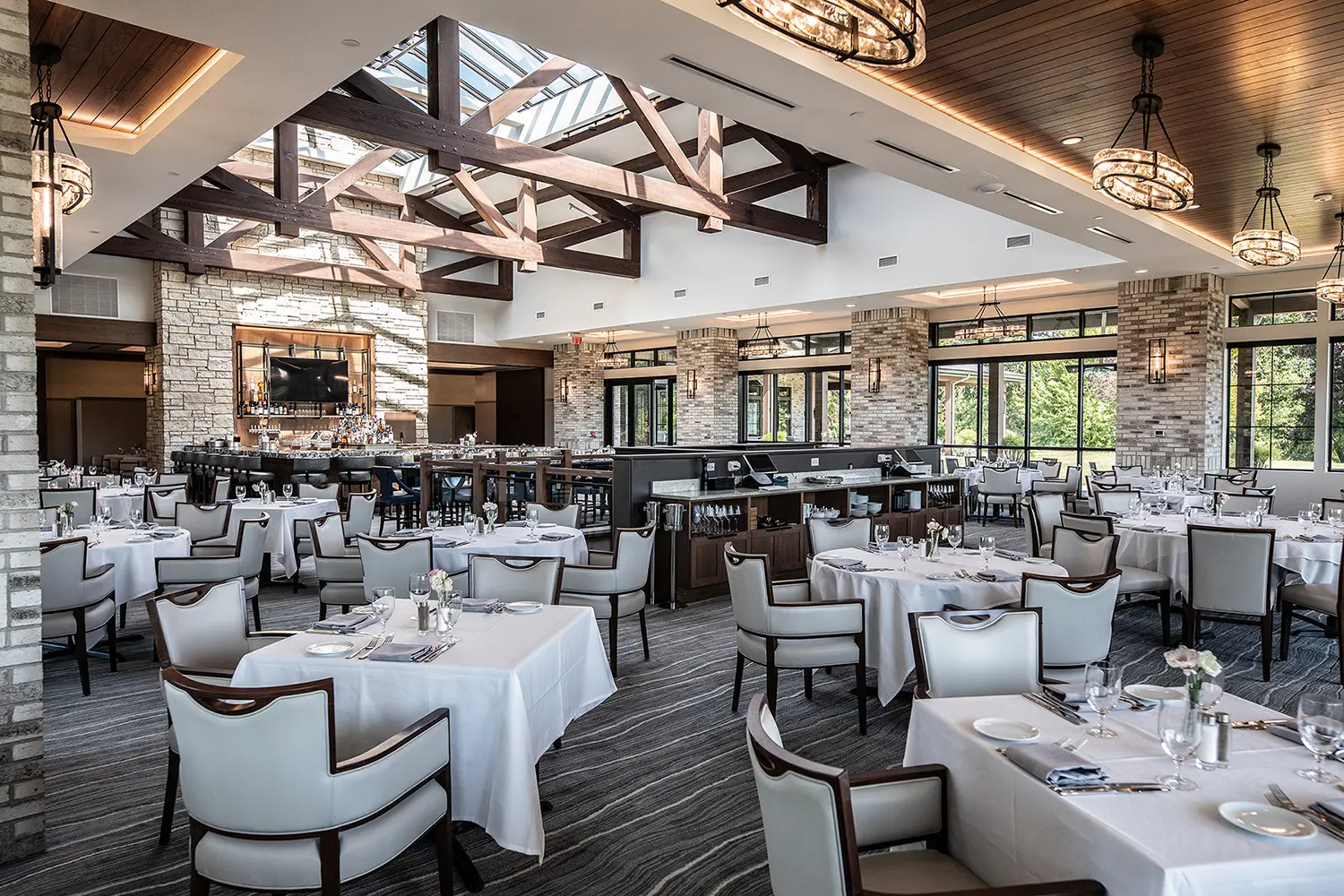 New mechanicals to support the specialty areas were installed including beer and soda line infrastructure throughout. The exterior of the clubhouse was finished with a combination of brick, stone, precast pieces, and high-end millwork trim details.